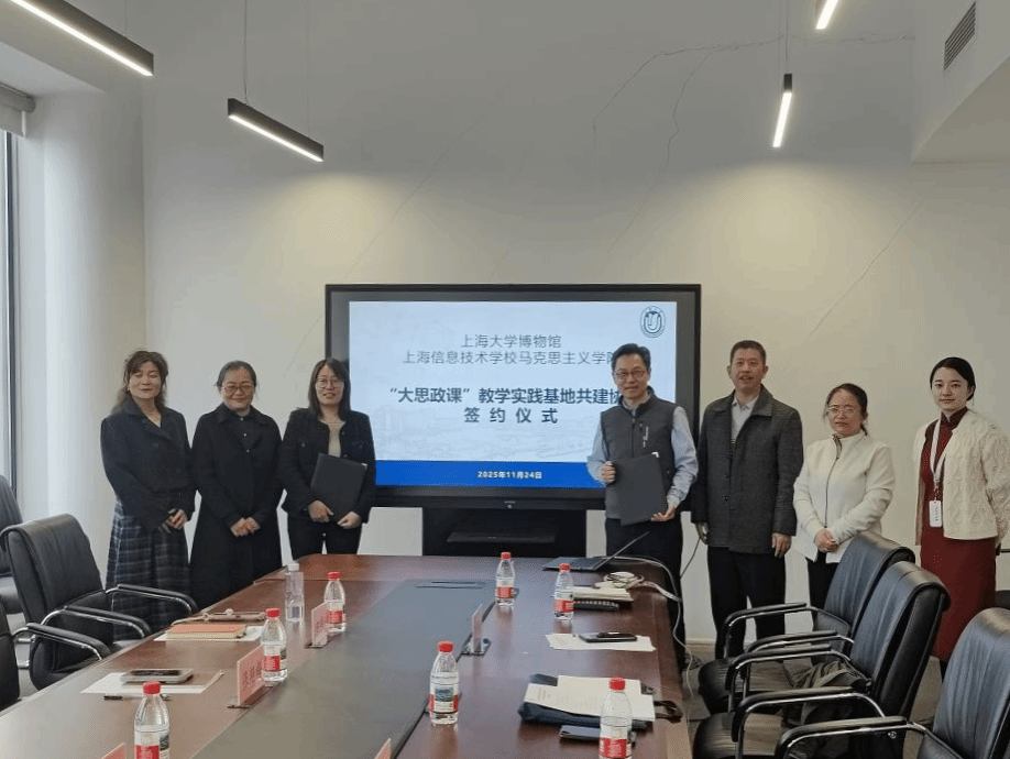 11月24日,上海大学博物馆与上海信息技术学校马克思主义学院“大思政课”教学实践基地共建协议签约仪式在721会议室召开。上海信息技术学校党委副书记、纪委书记张艳梅,上海信息技术学校教师发展中心副主任、马克思主义学院副院长田明琦,上海信息技术学校马克思主义学院思政教师董忠云来馆参观交流,校图博档党委书记王远弟主持仪式,博物馆馆长李明斌、支部书记曹默、馆员牛梦沉等参加仪式。