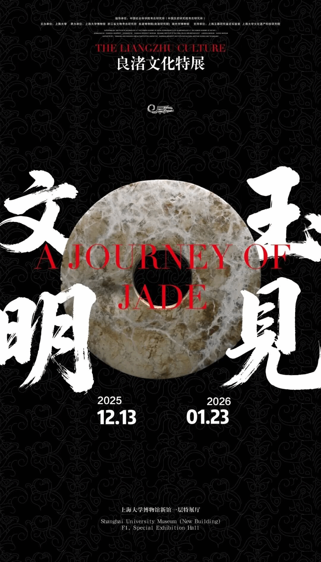 在此次论坛的背景下,12月13日,“玉见文明:良渚文化特展”在上海大学博物馆新馆一层特展厅开幕。展览由中国社会科学院考古研究所(中国历史研究院考古研究所)指导,上海大学主办,上海大学博物馆、浙江省文物考古研究所、良渚博物院(良渚研究院)、湖州市博物馆联合承办,上海玉器研究鉴定实验室、上海大学文化遗产科技研究院支持,以“奠基之诗”“秩序之诗”“精神之诗”为脉络,汇集126件(套)展品,聚焦良渚文化,展现玉器与社会文化的关联,实证中华五千年文明史。