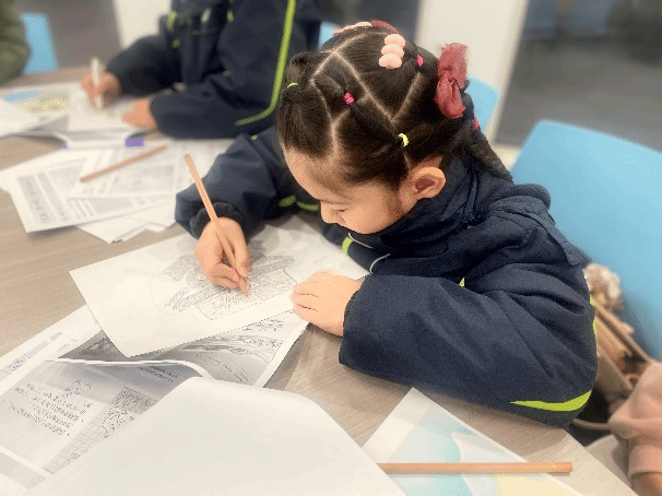 在“水”的环节,孩子们了解到良渚人是如何“饭稻羹鱼”,依靠丰富的水资源种植水稻、捕鱼捉虾;在“城”的部分,通过角色卡片抽取,孩子们化身“农民”“工匠”“贵族”,体验良渚社会的分工协作;在“玉”的篇章,孩子们亲手为“神人兽面纹”涂色,感受玉器中蕴含的信仰与礼制精神。