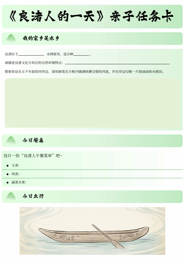 《良渚人的一天》亲子任务卡